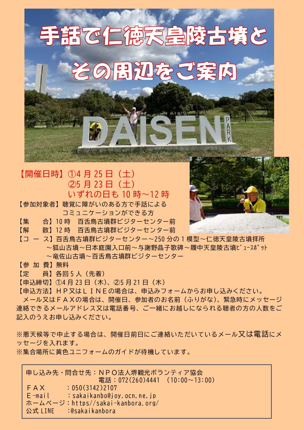 申込み先・問合せ先:NPO法人堺観光ボランティア協会